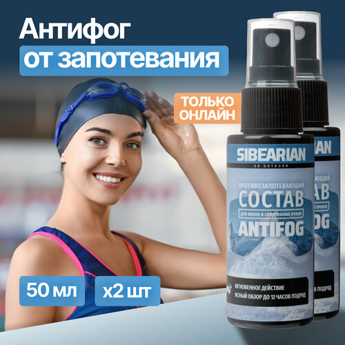 Антифог спрей от запотевания для очков для плавания, подводных и горнолыжных масок, визоров SIBEARIAN ANTIFOG 50 мл 2 шт набор