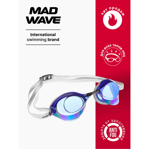 Очки для плавания MAD WAVE Turbo Racer II Rainbow, синий