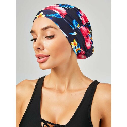 Шапочка для плавания женская для длинных волос в аквазоне GYM TEAM 54-60см Цветы ночь
