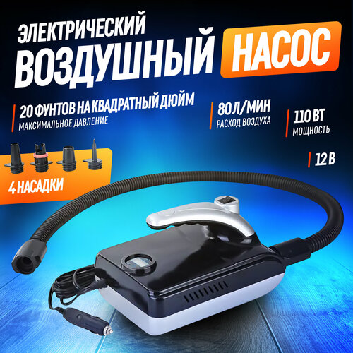 Электрический воздушный насос Sup, 110 Вт 12В представляет собой мощное и высокоэффективное устройство для оперативного накачивания лодок, матрасов, надувных бассейнов и других средств с большим объемом воздуха. Компрессорное оборудование для лодки надувной может быть запитано от обычного автомобильного прикуривателя и имеет предельную мощность 110 Вт. ПВХ аксессуар для рыбалки оснащен ЖКИ дисплеем, позволяющим варьировать предпочитаемым уровнем давления и контролировать другие принципиальные параметры. Лодочный насос для резиновой лодки выполнен из высокопрочного ABS пластика, что делает его устойчивым к внешним механическим деформациям. Данное позволяет гарантировать целостность корпуса и сохранить работоспособность в случае удара или непреднамеренного падения. Электрический воздушный насос для матраса и надувного бассейна имеет высокую степень защиты оболочкой (IP67). Подобный факт гарантирует сохранность внутреннего обустройства и обеспечивает герметичность корпуса (попадание инородных частиц в виде пыли, влаги и грязи исключено). Адаптер оснащен 3-хметровым кабелем, что способствует удобству эксплуатации. Электро компрессор для накачивания от сети может похвастать высокой производительностью, составляющей 80л/мин. Предельный уровень давления, которое способно нагнетать оборудование, равен 20 фунтов/кв. дюйм. Рыболовная лодка, объем которой не превышает 2 куб. м, надувается всего за 35-40 сек. Автомобильный насос 12 в высокого давления на базе воздушного компрессора имеет незначительную номинальную массу и габаритные размеры. Это позволяет перевозить оборудование даже в салоне транспортного средства. Несмотря на то, что основной областью практического использования насоса для сапа от прикуривателя является приведение надувной лодки в эксплуатационное состояние, он также может эффективно применяться для надувания детских плавательных бассейнов, матрацев, больших детских игрушек. Высокоэффективный sup для надувных изделий от машины в комплекте поставки предусматривает наличие резинового фитинга (3 м), одной насадки и руководства по эксплуатации.