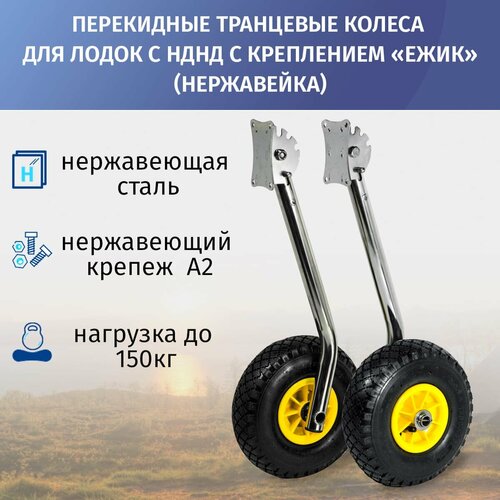 Колёса транцевые перекидные для лодок с НДНД, фланец "Ёжик", нержавейка