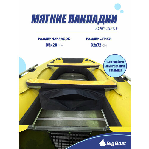 Комплект из 2х мягких накладок одна из них с сумкой на сидение лодки ПВХ, желтый 950х200х40