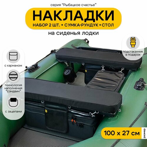 Мягкие накладки на сиденье для лодки ПВХ Рыбацкое счастье с сумкой-рундуком и столом