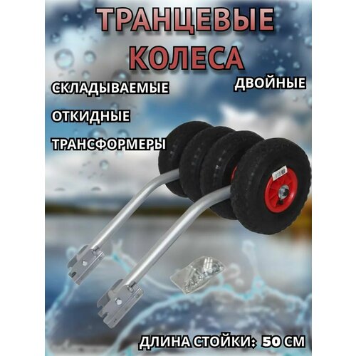 Транцевые колеса трансформеры двойные удлиненные(складываемые, откидные), длина стойки 50см, для лодки ПВХ