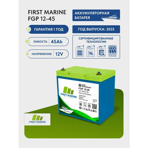 Тяговый аккумулятор First Marine SMB FGP 12В, 45Ач, AGM аккумулятор для лодки, мотора, 1 шт.