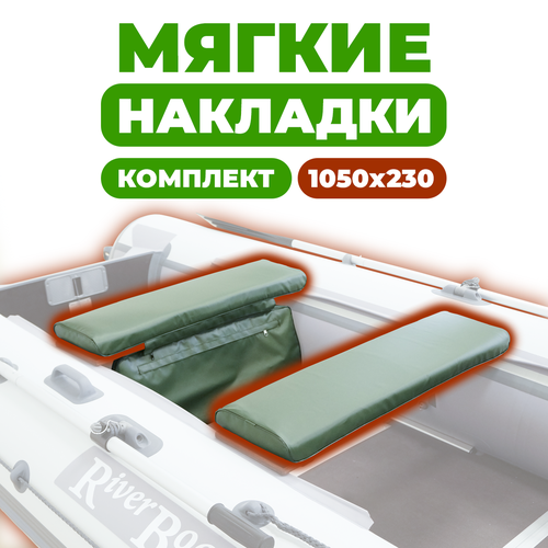 Комплект из 2х мягких накладок одна из них с сумкой на сидение лодки ПВХ, зеленый 1050х230х50