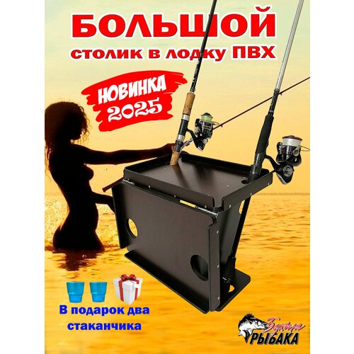 Большой столик в лодку ПВХ с удочкодержателями и подстаканником