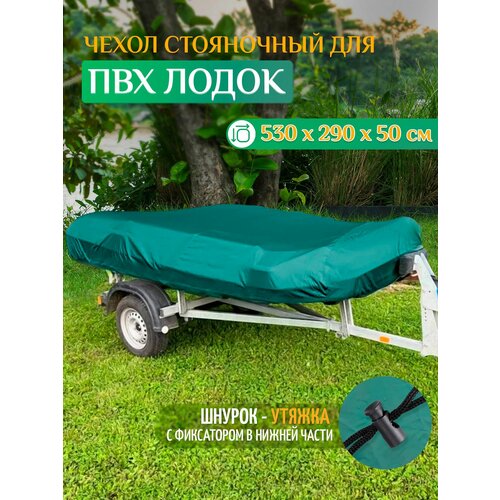 Тент - чехол Fler для лодки ПВХ, стояночный (530х290х50см) зеленый