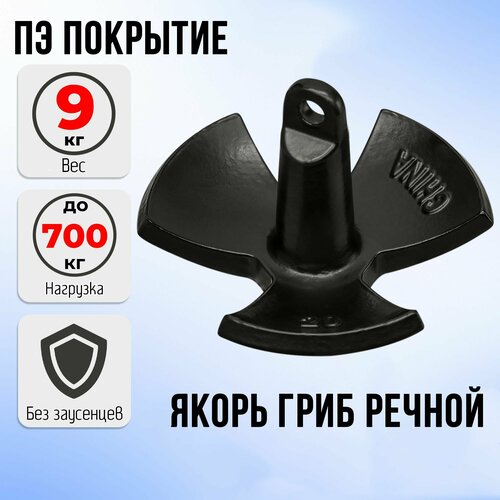 Якорь гриб для лодки пвх речной 9кг(20lb) черный