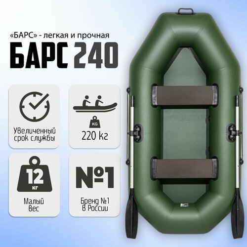 Гребная одноместная лодка ПВХ Барс 240 - представитель новой линейки гребных лодок в модельном ряде недорогих надувных лодок Мастер Лодок. Эта модель изготавливается из пятислойного ПВХ плотностью 750 г/м2, и предназначена для одного рыболова или охотника. В комплект надувной лодки Барс 240 входят весла, ножной насос, ремкомплект, сиденье и паспорт изделия. Лодка подойдет для охоты и рыбалки на небольших водоемах. Легкая и компактная надувная лодка ПВХ легко поместится в багажник автомобиля, ее удобно транспортировать в сложенном виде.
