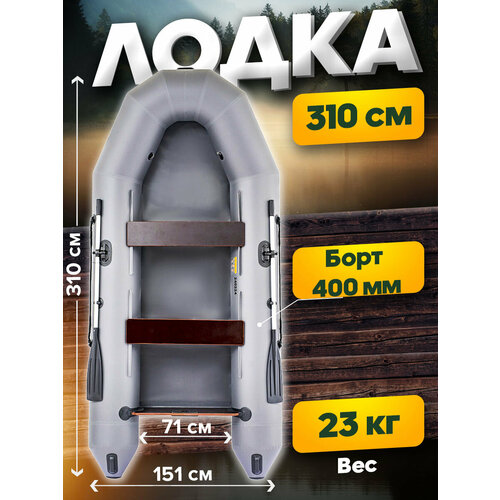 Лодка ПВХ под мотор идеально подойдет для рыбалки. Комфортный размер 310*151 см не занимает много места, так как упаковывается в специальную сумку, которая идет в комплекте. Длина кокпита 215 см. Ширина кокпита 71 см. Оптимальный диаметр баллона 40 см. Лодка моторная имеет 2 надувных отсека. Внимание! Для накачивания лодки, чтобы воздух не выходил - поверните сердцевину клапана в рабочее состояние (фото с инструкцией в карточке товара и вкладыш в лодке). Передвижные сидения позволят удобно расположиться в лодке. Производство: Россия. Грузоподъемность 400 кг. Сварные швы. Прочный ПВХ 850 г/м2 выдержит любые испытания на воде. В комплекте так же насос 5л. и прочные 2 весла.