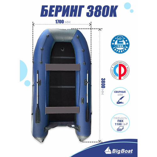 Надувная, под мотор, килевая лодка из ПВХ для рыбалки Bering (Беринг) 380К пол-книжка