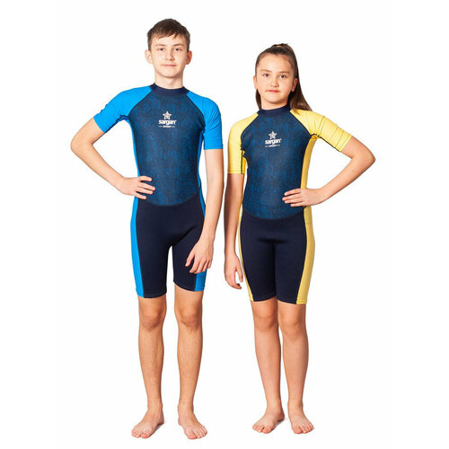 Гидрокостюм из неопрена 2мм SARGAN SPORT короткий шорти детский с боковыми вставками из лайкры 9-10 лет синий