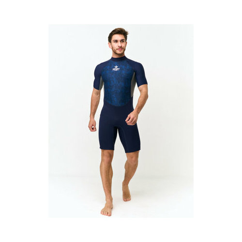 Гидрокостюм из неопрена 2мм, короткий шорти, мужской, с боковыми вставками из лайкры от известного водного и подводного бренда SARGAN – SARGAN Sport 1070/BL, цвет темно-синий.