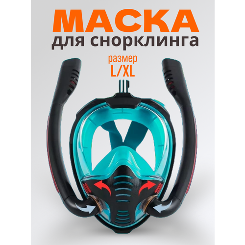 Маска для плавания и снорклинга с двумя трубками, черная, размер L/XL