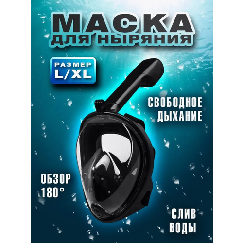 Полнолицевая маска для подводного плавания дает обзор на 180 градусов, возможность видеосъемки и комфортное дыхание. , Вы сможете дышать под водой как на суше, носом и ртом. Маска для снорклинга имеет большое внутреннее пространство, что позволяет использовать очки, открывая подводный мир людям с проблемным зрением. Для того чтобы стекло не потело, полнолицевая маска для дайвинга оснащается специальной вентиляционной системой, она подходит для длительных погружений, адаптируясь как к холодной, так и тёплой воде. Маска для подводного плавания имеет: возможность закрепления подводной камеры, клапан для вывода воды, систему, препятствующую попаданию воды внутрь, поплавок, который позволит быстро определить ваше местонахождение, мягкие эластичные прокладки, обеспечивающие 100% герметизацию, хорошие материалы, увеличивающие срок службы изделия, материал: небьющийся поликарбонат, силикон, полипропилен, длина трубки для плавания 25 см. Маска для плавания имеет 2 размера, который определяют по расстоянию от подбородка до глаз: S/M при расстоянии от 10 до 12 см, , L/XL при расстоянии 12 см и более.