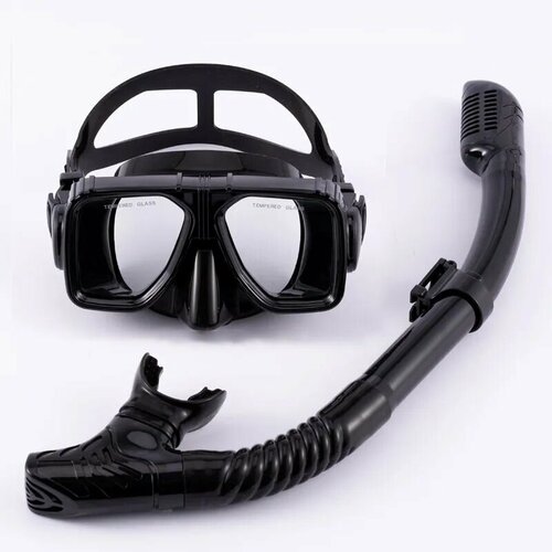 Подводная маска с трубкой для плавания, универсальная, черная