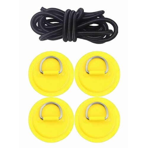 4 шт + багажная веревка Патч Рым для SUP доски с металлическим кольцом желтый
