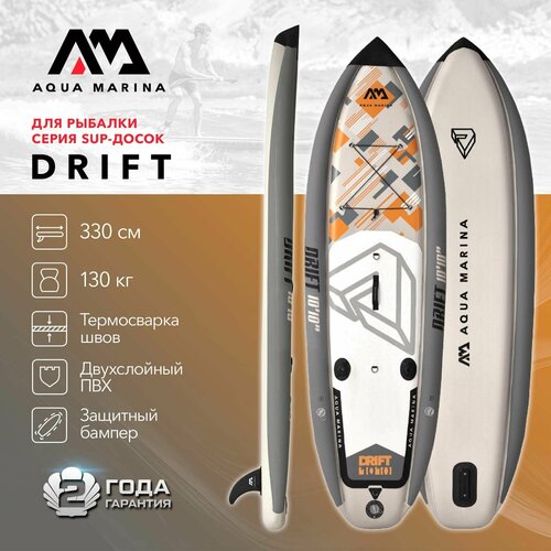 Сапборд надувной для рыбалки Aqua Marina Drift 10'10 330х97х15 см серая комплектация: весло насос сумка плавник лиш, удочки макс 130 кг (BT-20DRP)