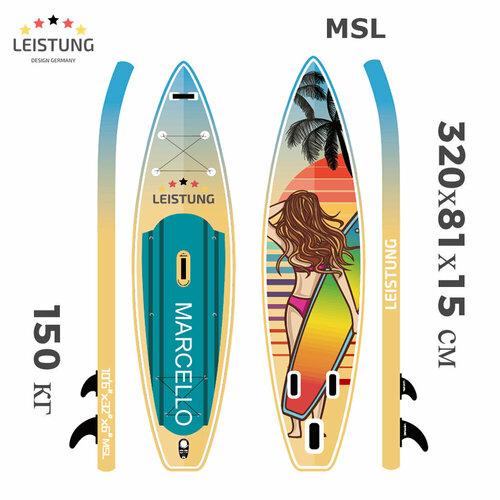 Сап борд надувной двухслойный для плаванья LEISTUNG MARCELLO 10.6 / Доска SUP board / Сапборд