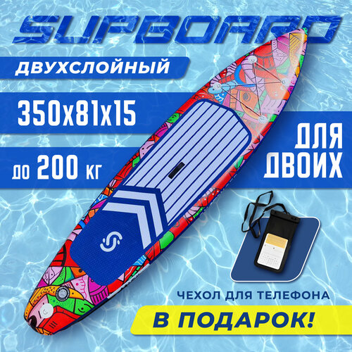 Сап борд надувной двухслойный для плаванья Skatinger Graffiti Red11.6 / Доска SUP board / Сапборд