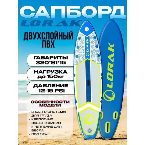 Сапборд Lorak 907, цвет синий, с рюкзаком, размеры 320x81x15 см