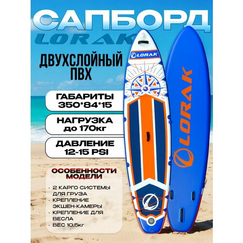 Сапборд Lorak 912, цвет синий, с рюкзаком, размер 350x84x15 см