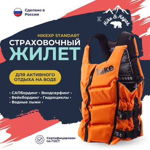 Жилет страховочный плавательный Standart hikeXp, оранжевый, размер М / Спортивный спасательный жилет для рыбалки, водных видов спорта, SUP