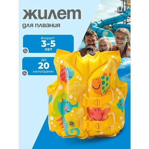 Надувной жилет INTEX "Рыбки", детский, максимальная нагрузка 20 кг, желтый
