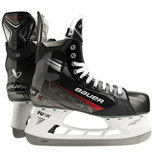 Полупрофессиональная модель коньков Bauer Vapor X3 оснащена отличным ботинком DIGI COMP, гарантирующим малый вес и комфортную посадку. Первоклассную поддержку и гибкость обеспечивает традиционный войлочный язык PRO STOCK. Благодаря стакану LS EDGE коньки показывают стабильные результаты на льду. Модель также имеет удобную кромку, обеспечивающую мягкое взаимодействие между верхней частью лодыжки и ботинком, а стальное лезвие LS PLUS отличается повышенным качеством и увеличенной высотой, что позволяет совершать повороты с более резким радиусом и дает возможность профилировать коньки в течение более длительного периода эксплуатации.