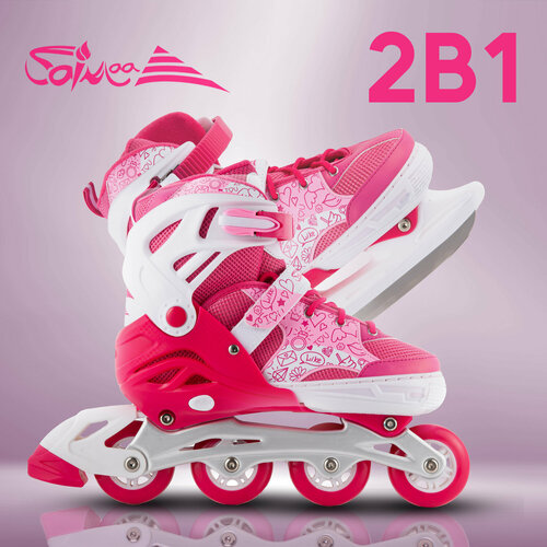 Ролики коньки 2 в 1 раздвижные Victory, размер M (35-38), розовый