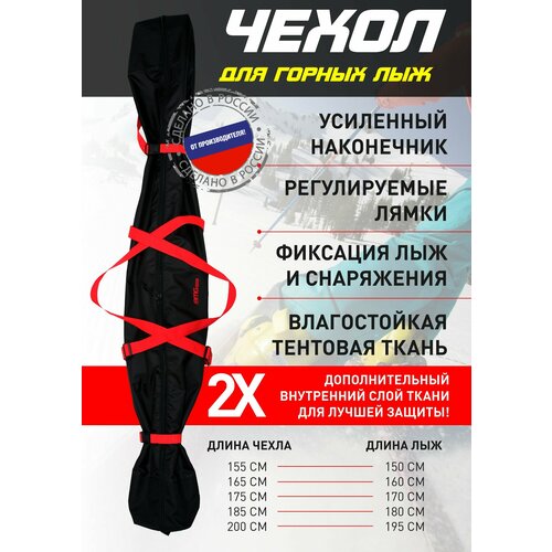 -В чехол свободно помещаются и фиксируются одна пара горных лыж и одна пара лыжных палок.